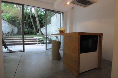 Tekst: <p>La construction arrière d’une habitation datant de l’entre-deux-guerres ne correspondait plus aux attentes du maître d’ouvrage, pas plus qu’aux exigences du confort moderne. L’idée de base de cette transformation était de créer une pièce polyvalente comportant le plus de relations possible et donnant une impression d’espace maximal. La structure en acier présente dans le volume arrière a permis une réalisation complètement nouvelle dans la zone arrière. Le squelette en acier a dans ce cas été complété par une structure en bois pour les parois et le toit. Le toit a été pourvu de deux cadres horizontaux. Ceux-ci permettent à la lumière de pénétrer profondément dans l’habitation existante et donnent chacun une vue différente sur la façade arrière. Le fait d’étendre l’utilisation des matériaux et des couleurs vers l’extérieur a permis de créer une unité d’ensemble qui renforce la relation avec l’extérieur. À l’intérieur, le choix a été fait de dissimuler les parties cuisine et lessive dans des armoires, une manière d’utiliser le nouvel espace pour mettre les diverses activités à l’avant-plan tout en se plaçant soi-même en retrait. </p>
