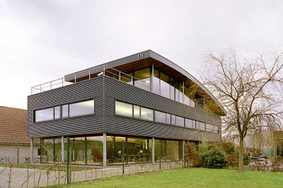 Tekst: <p>L’extension s’implante dans la zone latérale du bâtiment existant. Elle contient, au rez-de-chaussée, un espace d’accueil, une salle de formation et des locaux réservés au personnel. L’étage est occupé par des bureaux et une salle de réunion. Outre ces surfaces indispensables au développement de l’entreprise, le projet offre une vitrine, un point d’appel pour les visiteurs. <br>